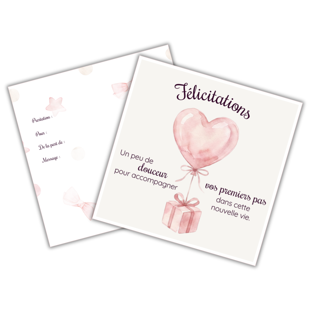 Cette carte cadeau permet aux parents de choisir la prestation qui leur sera la plus utile après la naissance : un accompagnement doux, concret et adapté à leurs besoins.